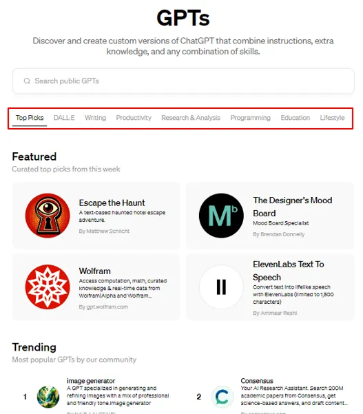 When you click on the Explore GPTs button you can see a range of tools, or GPTs (surely this word isn't going to enter the English language?):