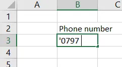 Often you'll want to enter numbers or formulae into a spreadsheet, but you don't want Excel to treat them as such. To do this, prefix entries with a ' key: