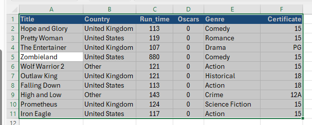 To do this, select a single cell in the list and press Ctrl + A to select the whole range: