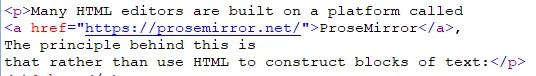 Many HTML editors are built on a platform called ProseMirror, You would expect an HTML editor to use HTML to construct blocks of text:
