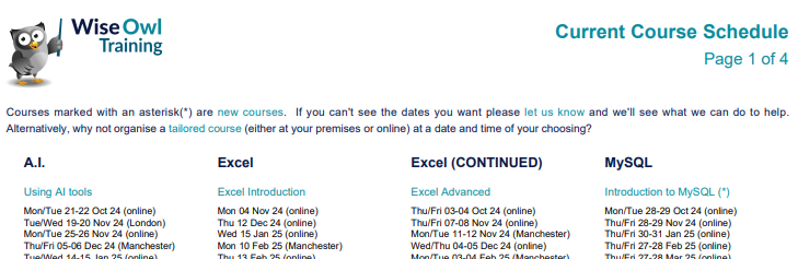 | We've now published our schedule of courses for the coming 15 months (up to the end of 2025 in fact) in a handy format convenient for bookmarking or printing. |