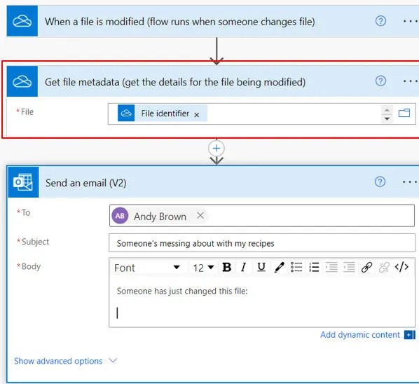 | This blog shows how you can create a flow in Power Automate to send yourself a notification whenever someone makes a change to a file in a given OneDrive folder (the blog is designed to give you a good overview of what working with Power Automate is like). |