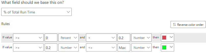 | Although Power BI allows you to display values as a percent of the grand total, you can't conditionally format this directly. Fortunately, you can use a measure to solve the problem. |