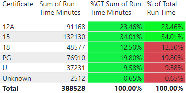 Here the run time minutes are being displayed as a percentage of the overall total run time.