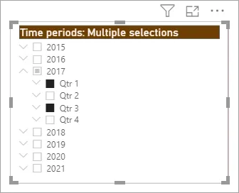 Here I've changed the default slicer header from showing the visual field names to showing the words Time periods.