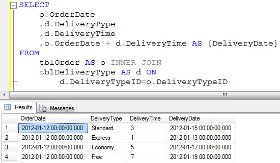 Here we've added the DeliveryTime value to the OrderDate to work out what the DeliveryDate will be.