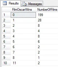 To demonstrate this technique we're going to list the number of films which have won different numbers of Oscars. The output we're aiming for is shown in the diagram below: