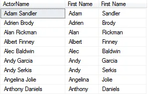 dbo.fnFirstName(ActorName) AS 'First Name',