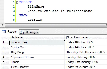 RETURN DATENAME(DW,@MyDate) + ' ' +